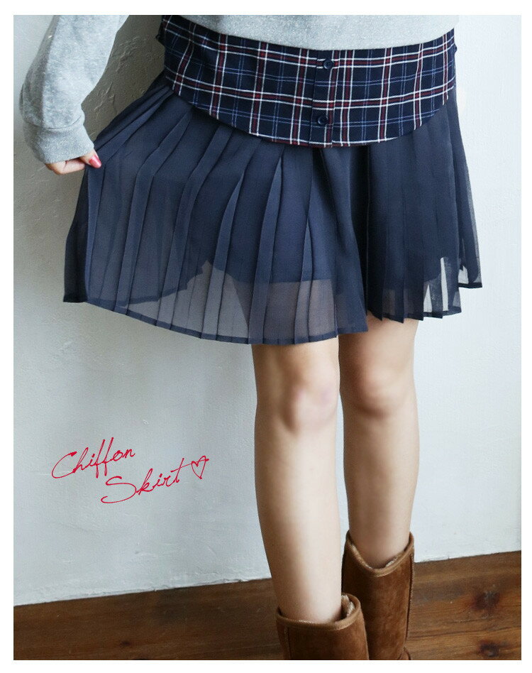 プリーツスカート 無地 シフォン スカート ボトム ひざ丈 レディーススカート レディースボトム ミドル丈ミディアム丈 プリーツ シフォン 裏地 シンプル ウエストゴム 万能 ブラック 黒 赤 ボルドー コックリカラー