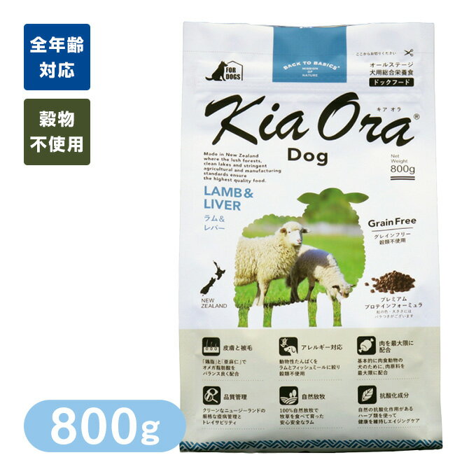 Kia Ora (キアオラ/キア オラ) ドッグフード ラム&レバー 800g ■ ドッグフード ドライフード 穀物不使用 グレインフリー ペットフード 犬 ドックフード