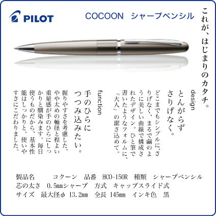名入れ 無し の商品です パイロットシャーペン コクーン cocoon●キャップスライド式 HCO-150R繭のような美しい曲線デザイン 8色のボディカラーPILOT プレゼント シャープペン 文房具 筆記用具 ■名入無