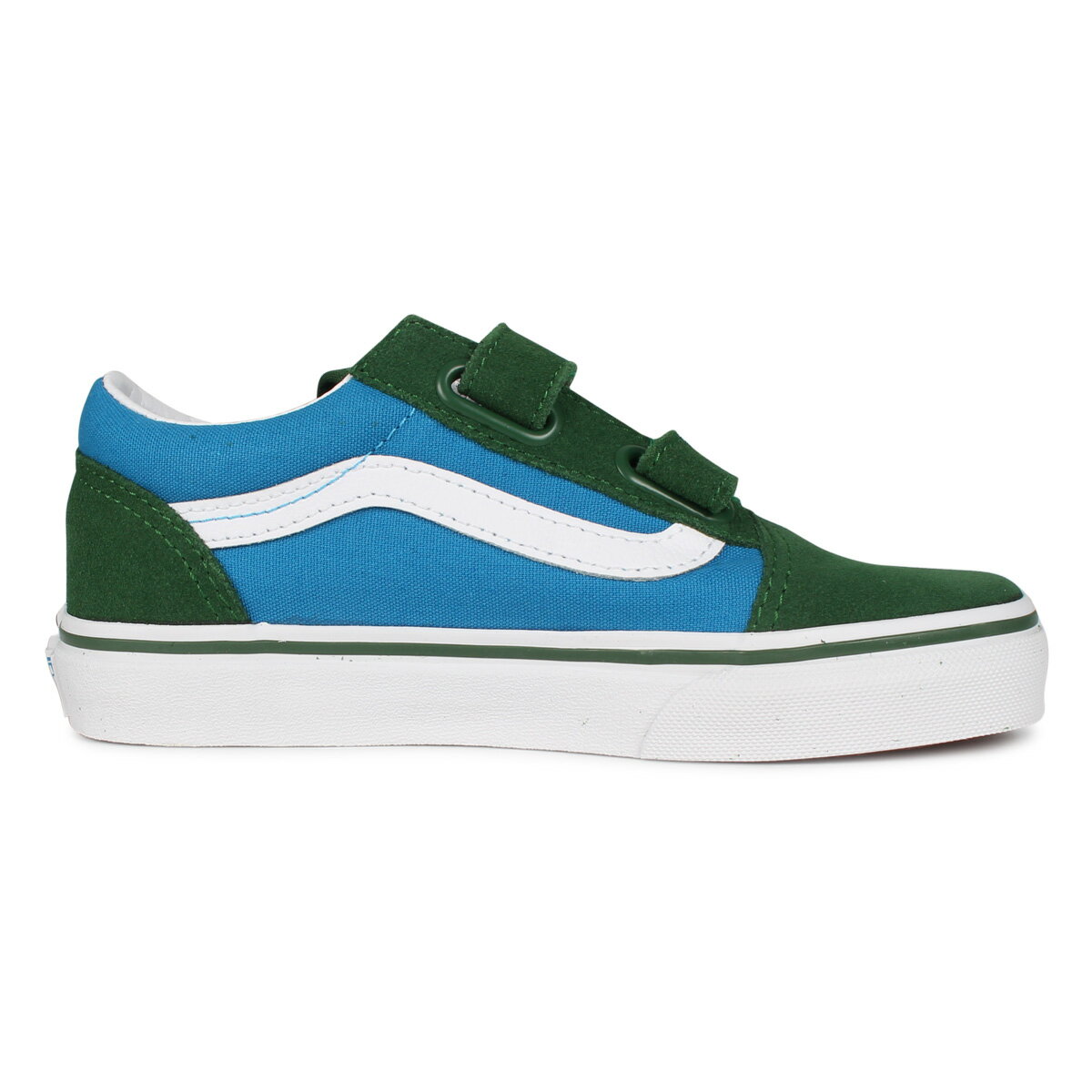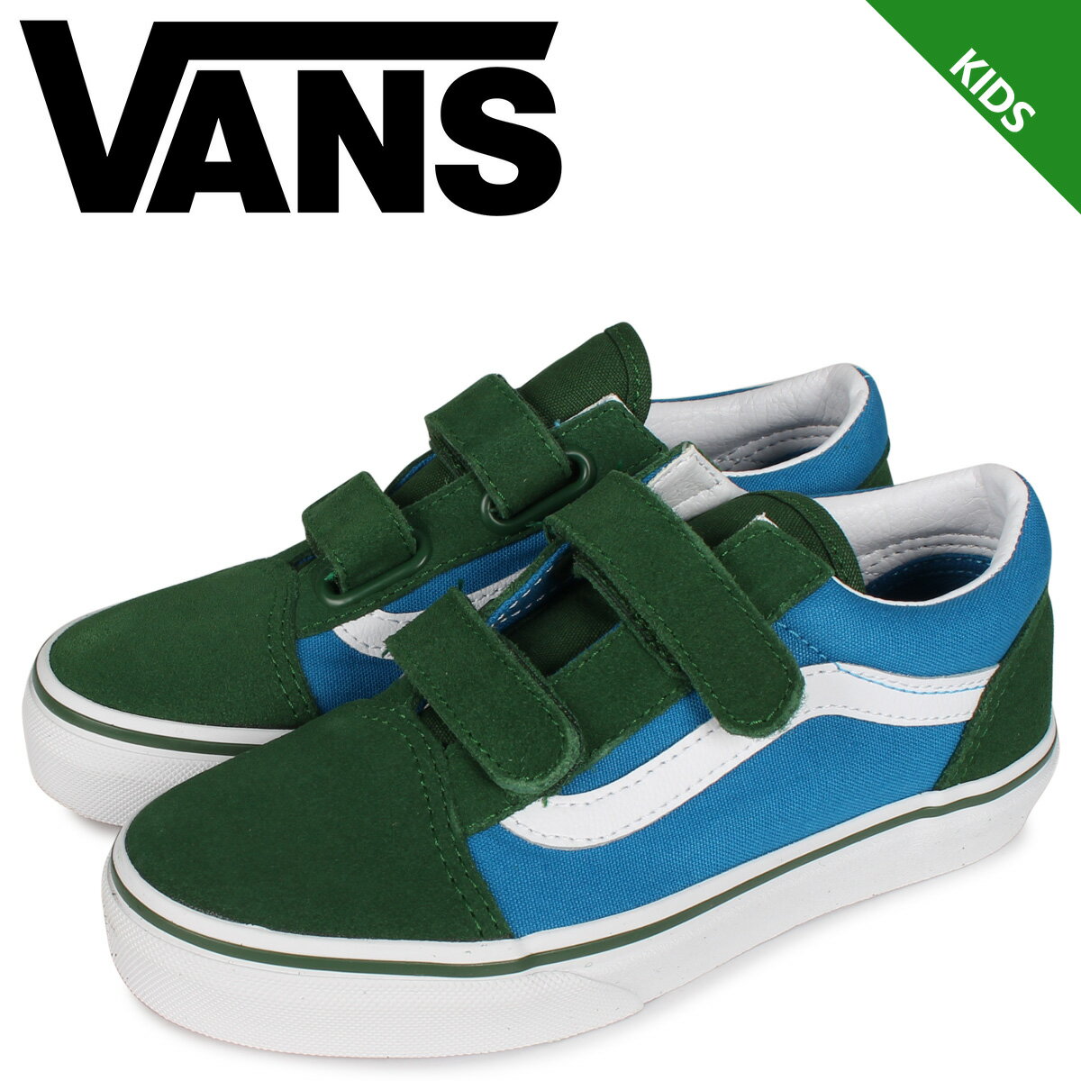 キッズスニーカー【VANS ヴァンズ】OLD SKOOL V キッズ スケートシューズ■品番:VN-0A4BUVWK9 ■カラー 2TONE BLUE GREEN -キッズサイズ18.5cm〜21.0cm-(バンズ キッズ 子供 スケボー シューズ ベルクロ マジックテープ スニーカー シューズ オールドスクール)0401